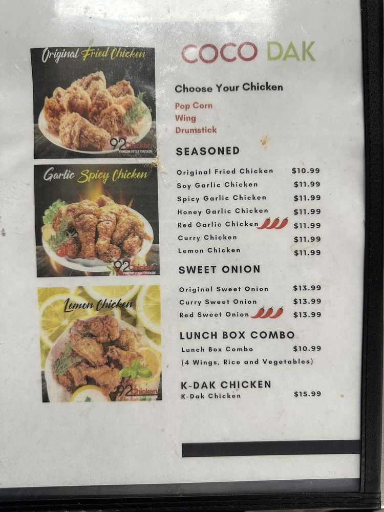 Welcome to COCODAK w/ 92 Chicken, your go-to destination for irresistible Korean-style chicken wings nestled in the heart of Stockton. Located at 1616 E March Ln, this gem offers a tantalizing menu featuring Spicy Drumsticks, Honey Wings, and even a whole Kdak chicken, all masterfully fried to crispy perfection.